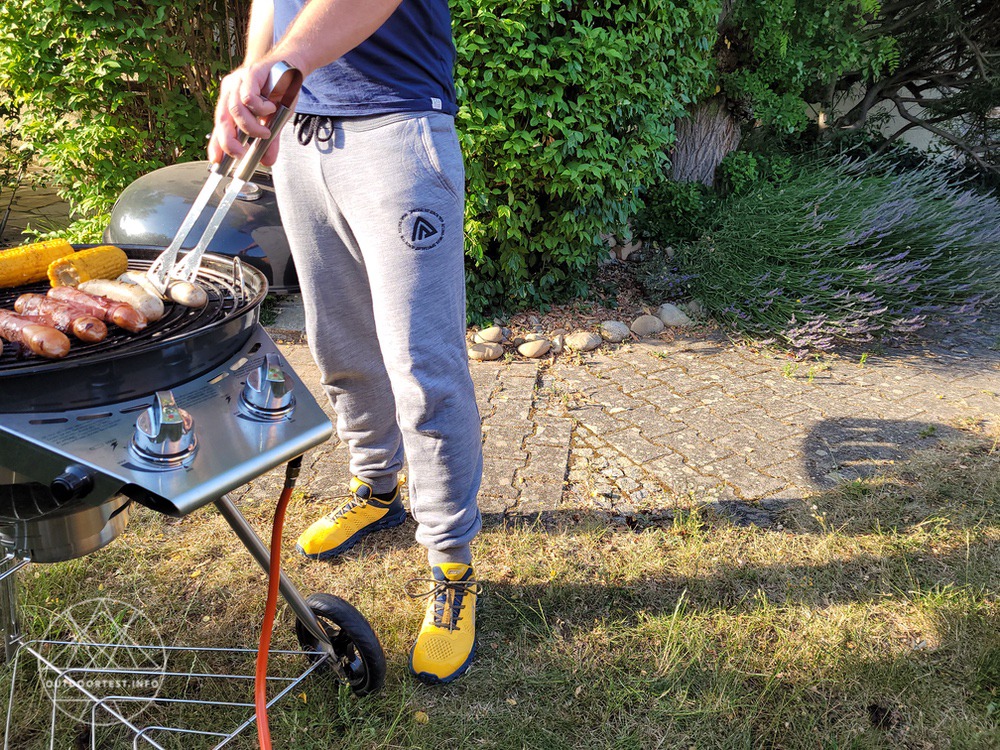 In der Zeit des Testes trug ich die Fleecewool Joggers auch sehr gerne auf der heimischen Terrasse oder im Garten bei entspannten Grillsessions mit anschließendem Feuerle. Sinken die Temperaturen dann allmählig ab, nachdem man sich den Bauch gemütlich vollgeschlagen hat, und die Sonne verabschiedet sich, hält einem die Hose zuverlässig warm und man fühlt sich konstant wie auf Wolke 7. Auch frischere Brisen hält die Hose sicher von einem fern.
