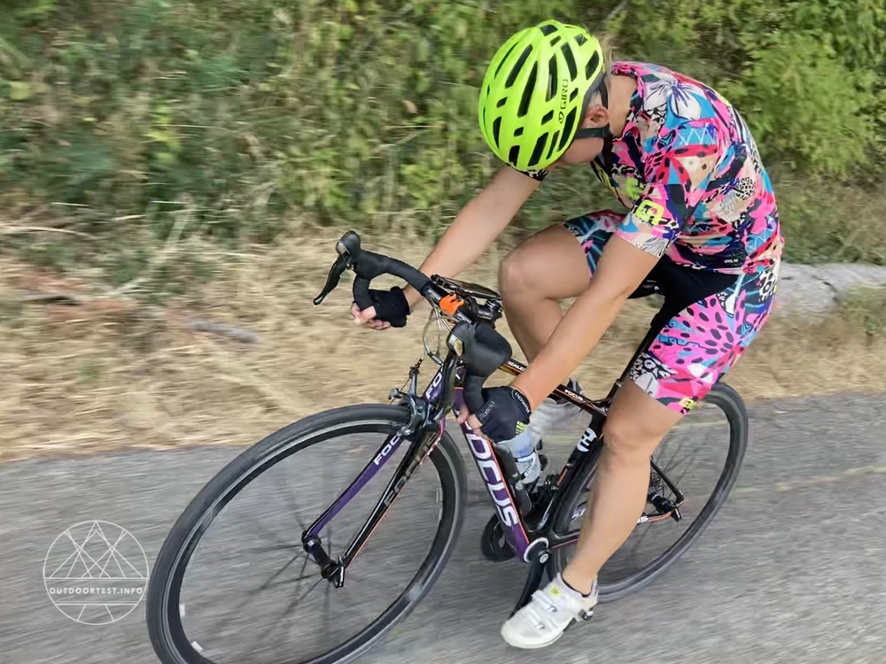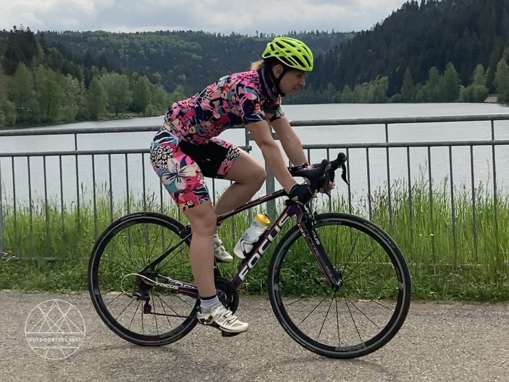 Das Material trägt sich total angenehm auf der Haut. Die Hose ist elastisch und gibt trotzdem einen guten Halt. Das Material leitet den Schweiß gut ab und trocknet auch superschnell – für heiße Rennradtage wie gemacht.