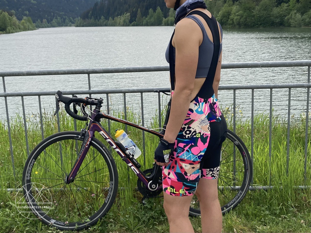 Hineingeschlüpft in Größe M sitzt die Alé Kenya Trägerhose wie angegossen. Wie üblich für italienische Marken, bietet es sich an, eine Größe größer zu bestellen. Die Form ist figurbetont, die Beinlänge für heiße Tage etwas kürzer. Die Träger haben für meinen Körperbau die richtige Länge, sie engen nicht ein und halten die Hose trotzdem an Ort und Stelle und verhindern, dass zwischen Hose und Trikot am Rücken ein Spalt entsteht.