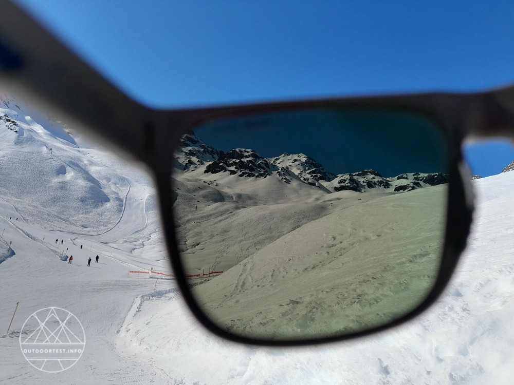 Die Sicht ist dank den dezentrierten Scheiben klar und unverzerrt. Gleichzeitig bemerkt man, dass sie einen 100 % UV-A-, -B- & -C-Schutz bietet und durch die verspiegelten Gläser die Infrarot Strahlung reflektiert wird. Die Augen ermüden selbst nach einem langen Tag im Sonnenschein nicht, da die Brille sehr wohltuend für die Augen ist. Die großen Gläser bieten auch einen gewissen Windschutz.