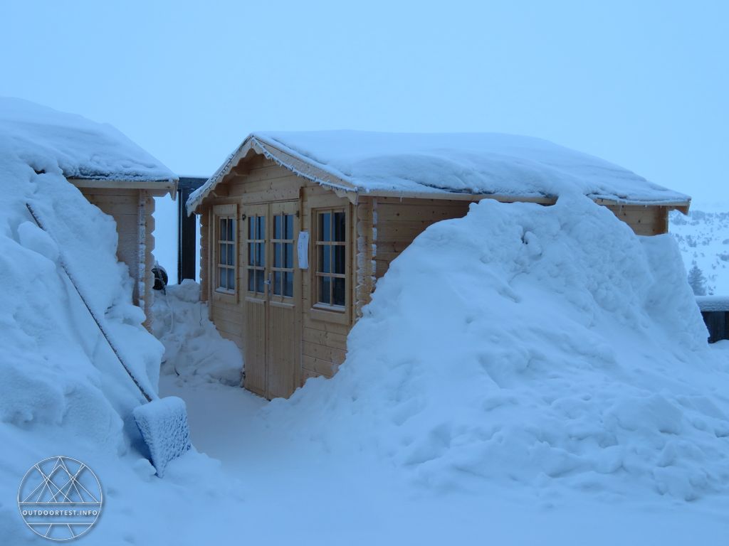 Unser Guide kündigte uns die Hütte als hübsche Hütte mit sehr netten Leuten an. Wir waren gespannt, aber in erster Linie waren wir jetzt doch ganz schön Ko. Nach nur 5 Stunden inklusive kurzer Pausen haben wir unsere Tour geschafft. Wir hätten ja nicht so rennen müssen, es war Zeit genug. Aber so sind wir verrückten Hühner eben. Jetzt freuten wir uns die Schneeschuhe endlich abschnallen zu können.
