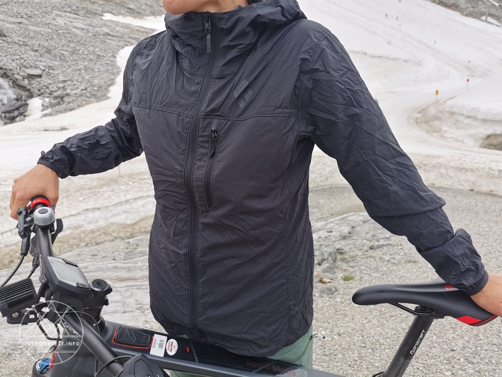 Der Alpine Start Hoody kommt bei mir zuhause an und ich bin vom geringen Gewicht schon beim Auspacken angetan. 190 Gramm wiegt die Jacke aus dünnem, aber elastischem Stoff und soll dabei Wind und Wetter vom Körper fernhalten.