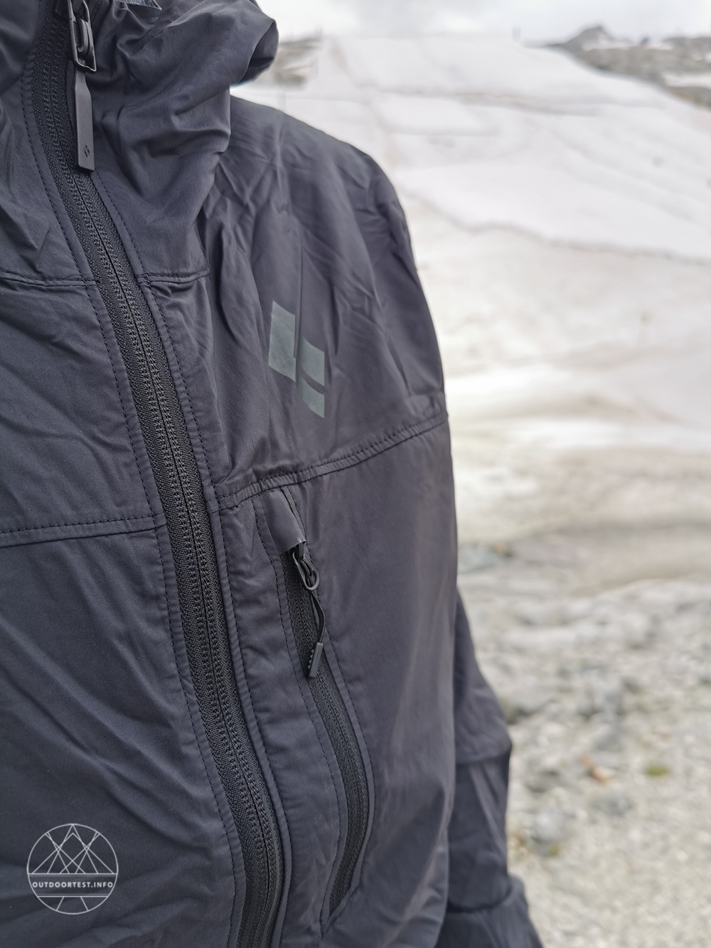 Ansonsten ist die Jacke schlicht gehalten. Der Kragen geht direkt in die Kapuze. Auf Höhe der Brust wurde die Jacke linksseitig mit einer Tasche bedacht. Der Clou dabei, in dieser Tasche soll der Alpine Start Hoody einfach und platzsparend verstaut werden.