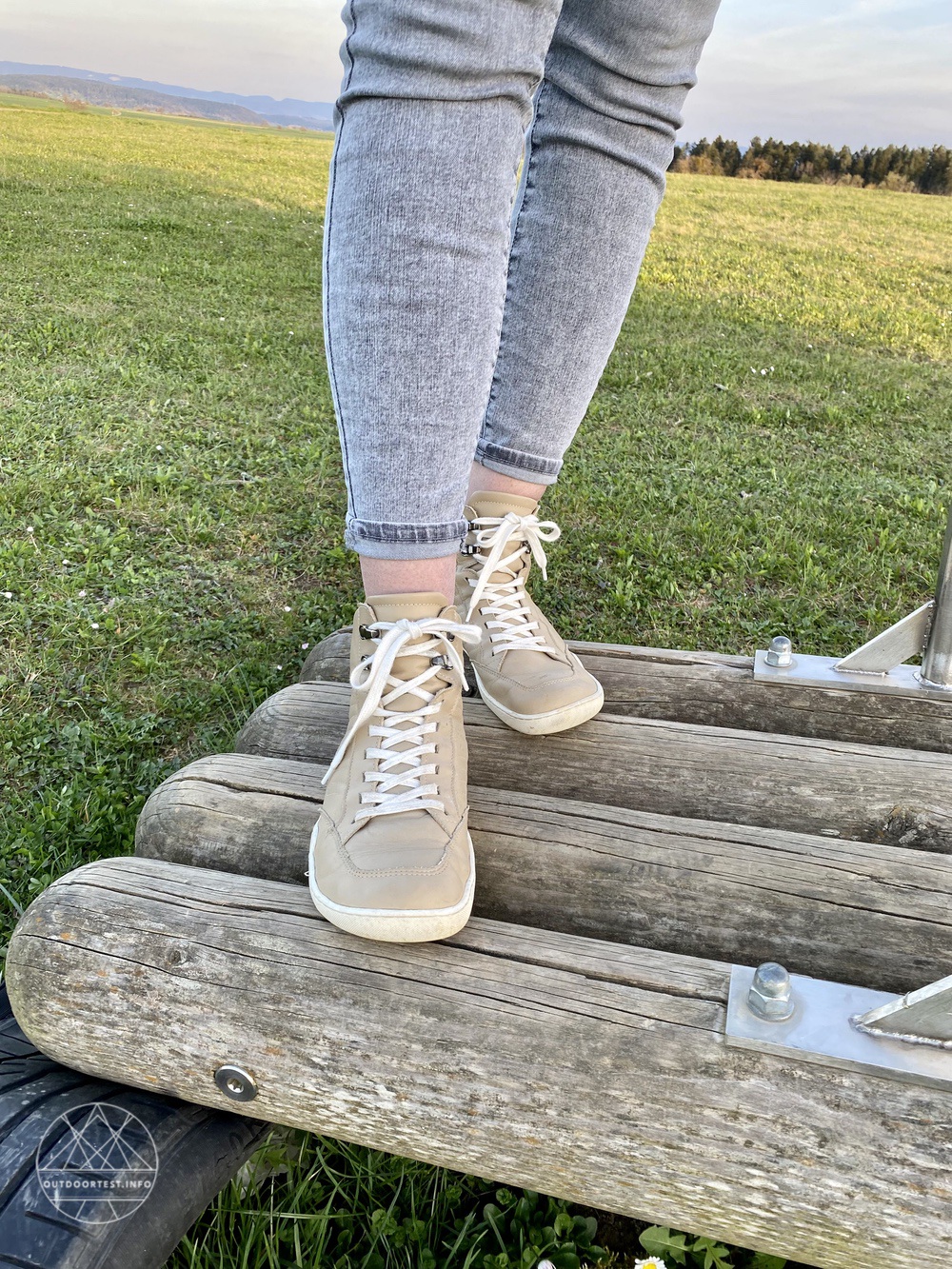 In der Farbe ecru passt er zu beinahe allem, zu blauen Jeans aber richtig gut. Die Form ist typisch für Barfußschuhe, was bedeutet, dass die Zehenbox eher großzügig ist und der Schuh dadurch von „normalen“ Schuhen bereits auf den ersten Blick zu unterscheiden ist.