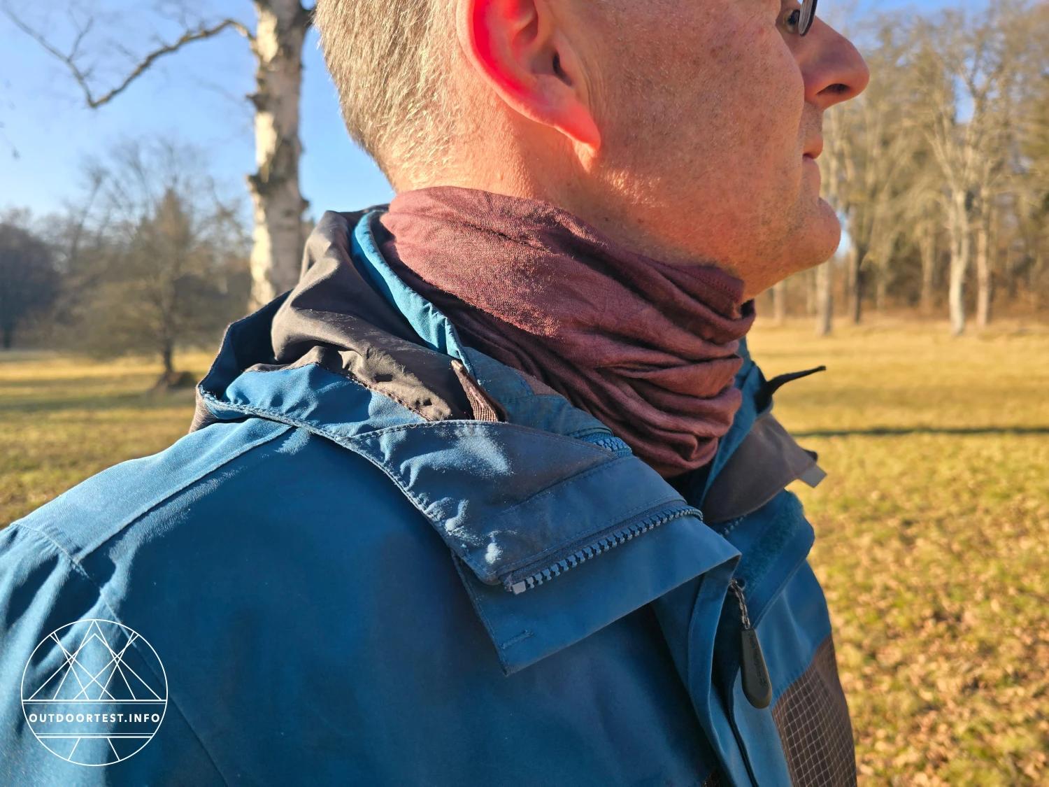 Im Einsatz zeigt das Buff Merino Lightweight schnell seine Stärken. Es lässt sich natürlich als Halstuch tragen, aber genauso gut als Mütze oder Gesichtsschutz tragen. Meine Lieblingsposition ist das Stirnband, da ich es so gut an kalten Tagen unter dem Fahrradhelm tragen kann, also die Ohren bedecke, der Helm aber trotzdem fest auf dem Kopf sitzt. Über mehrere Wochen hinweg trage ich das Tuch fast jeden Tag. Die Atmungsaktivität ist top, selbst an warmen Tagen und viel Bewegung entsteht kein unangenehmer Hitzestau. Ich merke die besonderen Eigenschaften der Merinowolle: Im Winter wärmend, an wärmeren Tagen kühlend. Dazu kommt die Geruchshemmung von Merino, die ich für den Testzeitraum absolut bestätigen kann: Ich trug das Tuch beim Sport, beim Wandern, beim Joggen, von minus 10 bis zu plus 15 Grad Außentemperatur. Während des gesamten Testzeitraums war keine Wäsche erforderlich.