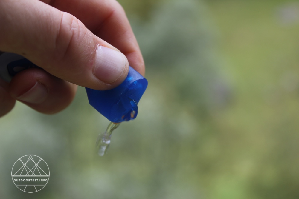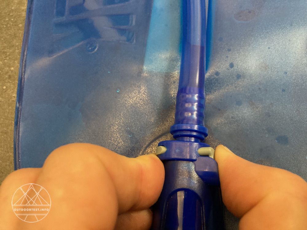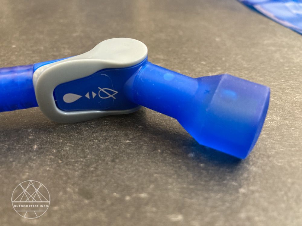 Sehr beeindruckt bin ich von dem Mundstück. Es hat einen kleinen Hebel, mit dem ich regeln kann ob die Flüssigkeit bis ganz zur Öffnung fließen kann oder nicht. Ich habe ihn während der Wanderungen immer offen und somit muss ich nur das Mundstück in meinen Mund führen und drauf beißen, schon fließt das Wasser in einer ausreichenden Menge. Das Big Bite Ventil verschließt sich auch wieder sehr schnell komplett und so tropft auch nichts. Das Big Bite Ventil ist eine sehr geniale Lösung. So muss man auch mit seinen Fingern nicht irgendwie am Mundstück rumfummeln und dies steigert die Hygiene enorm.