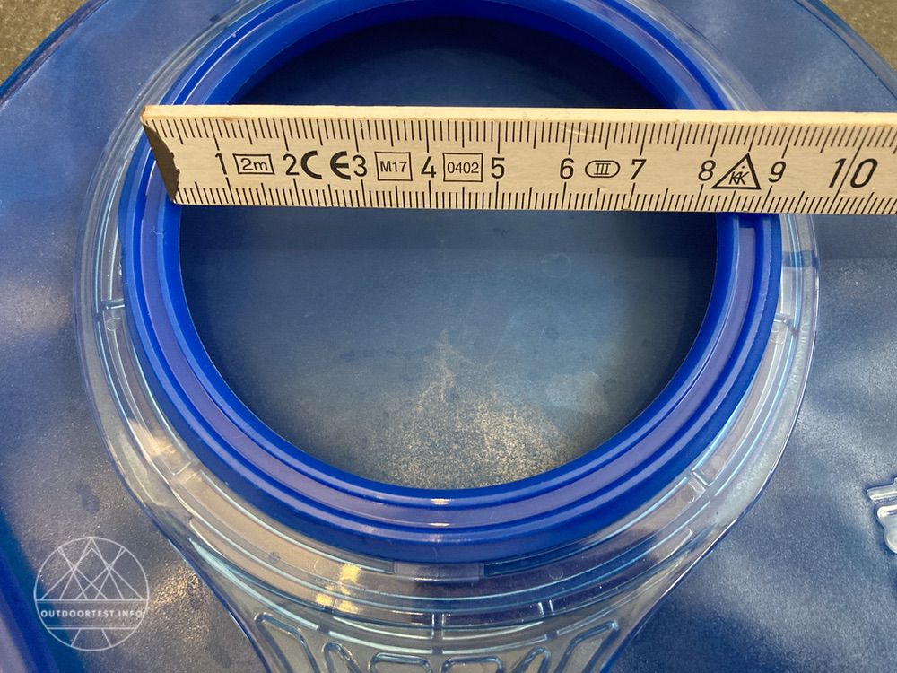 Als ich die 3l Trinkblase ausgepackt habe, war ich von der Bearbeitung beeindruckt. Die Ränder sind sehr sauber abgeschnitten und geklebt. Das Material fühlt sich robust genug an, auch mal einen etwas spitzeren Gegenstand auszuhalten. Der Schlauch ist stabil und flexibel genug um ihn durch den Rucksack zu schleifen und zu befestigen. Die Öffnung ist mit 8,5cm sehr großzügig und mit einer halben Umdrehung schließbar. Der Eindruck ist schon einmal sehr positiv, doch wie schlägt sich die Trinkblase in der Praxis?