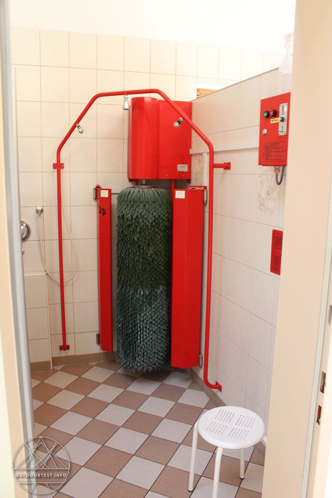 Ganz witzig ist die in einer Duschkabine integrierte Bodywash bzw. Menschenwaschanlage. Diese erinnert beim ersten Blick ein wenig an die Bürsten aus einer Autowaschanlage. Manch ein anderen sieht darin auch Bürsten, an welchen sich Kühe scheuern 😉