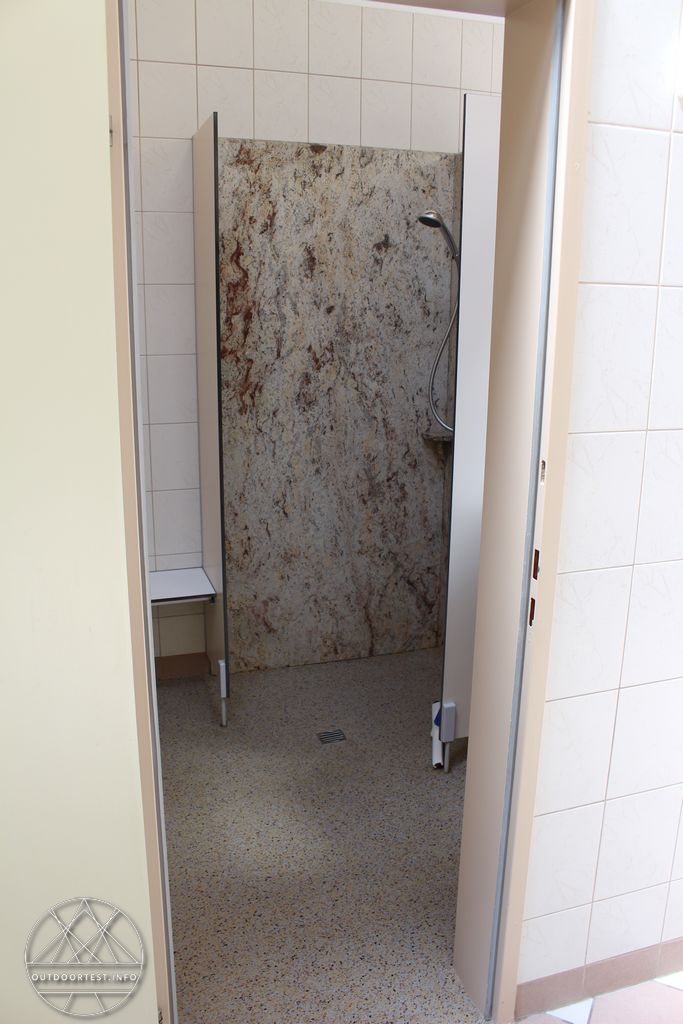 Die Warmwasserduschen sind sehr groß geschnitten, so dass man hier ausreichend Platz hat. Auch ein Waschbecken ist hier mit integriert. Zusätzlich gibt es noch ein Babybad, eine mietbare Badewannenkabine, sowie eine Behindertenkabine.