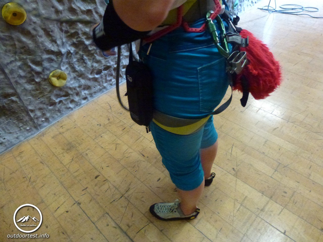 Der Stoff ist angenehm auf der Haut. Trotzdem hat er eine ausreichende Dicke, um nicht sofort beschädigt zu werden, wenn man am Fels einmal Kontakt mit diesem hat.