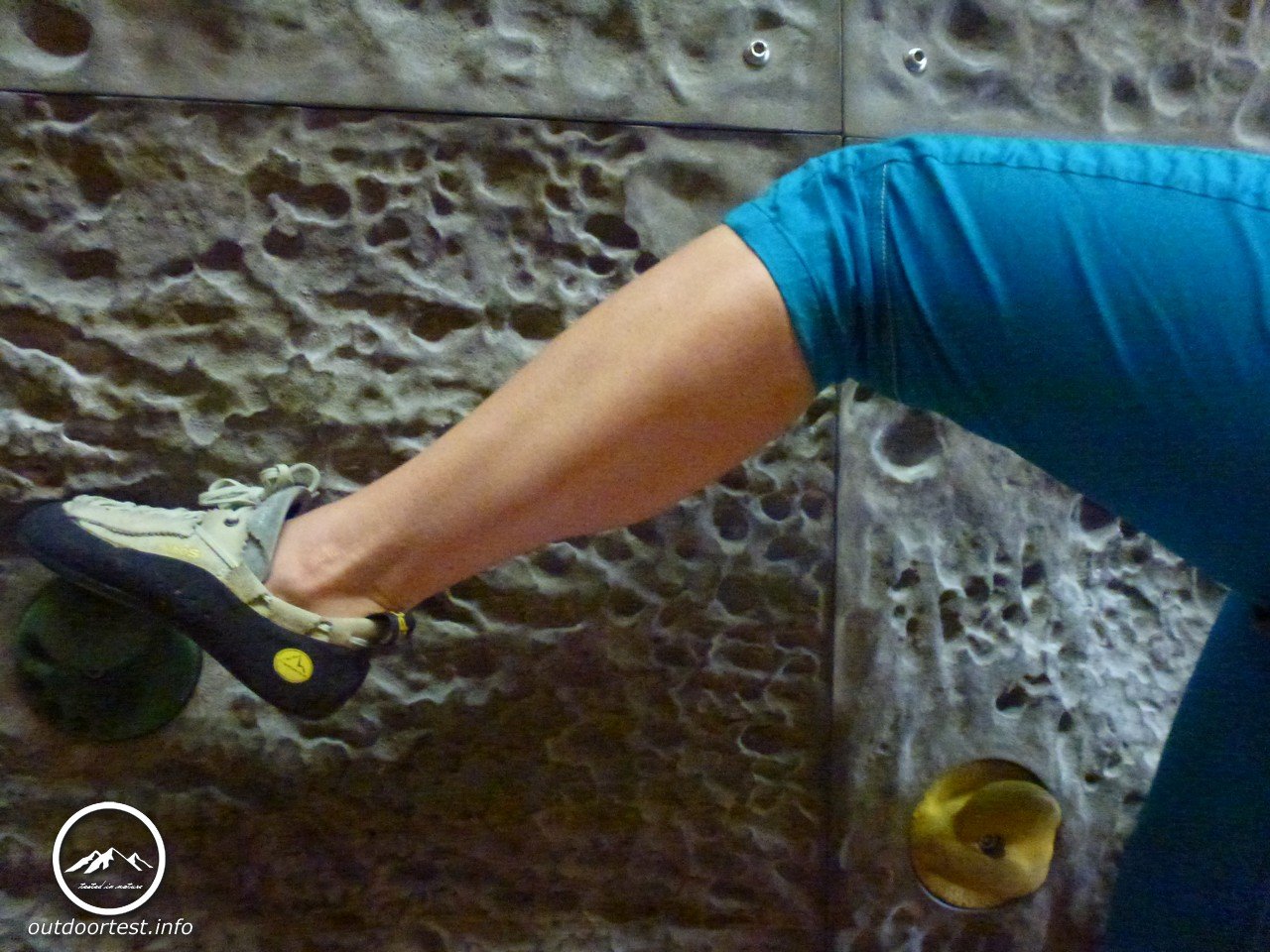 Durch den Elasthananteil ist die Hose gut dehnbar und macht jede Bewegung mit. Der Schnitt ist so gewählt, dass auch bei angezogenen Knien die Hose nicht zu tief im unteren Rücken herunter gezogen wird. Dies ist beim Klettern wichtig, damit man nicht ständig im Freien steht. Trotzdem ist die Hose stylisch kurz im Schritt geschnitten.