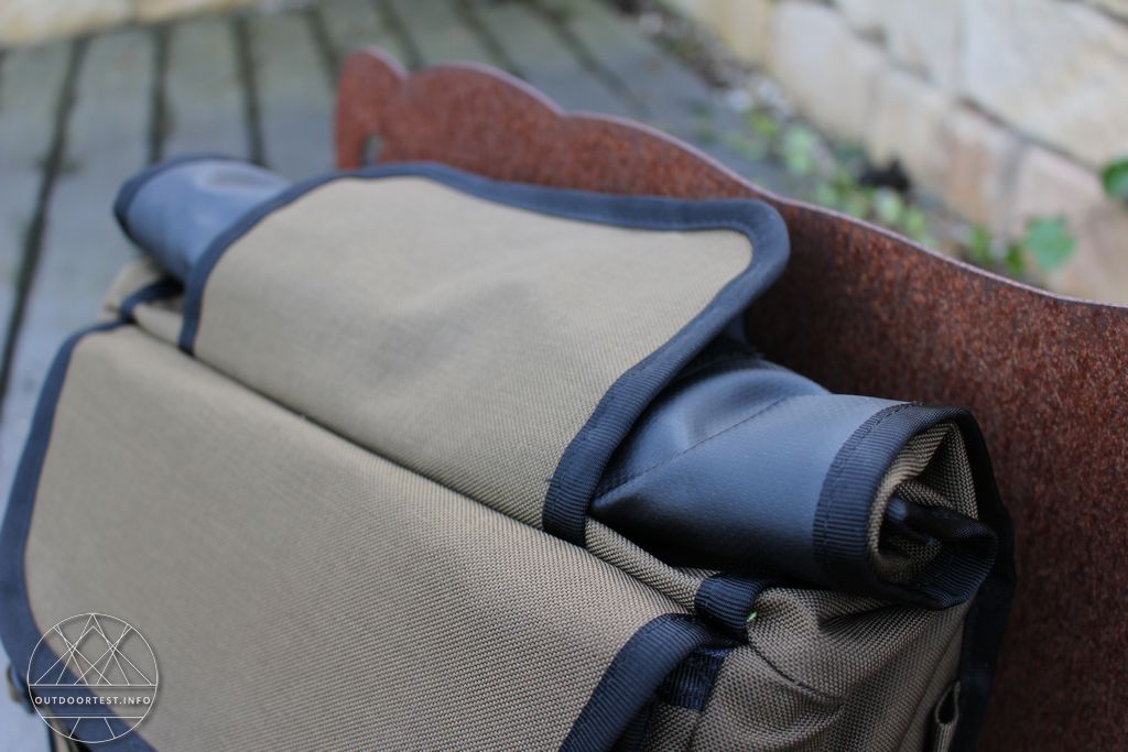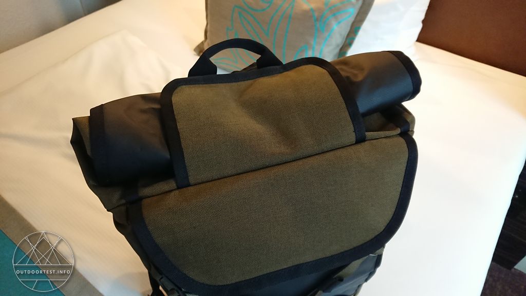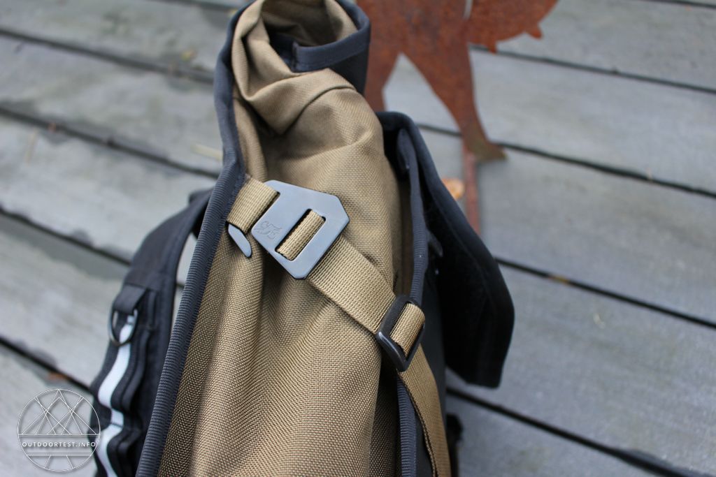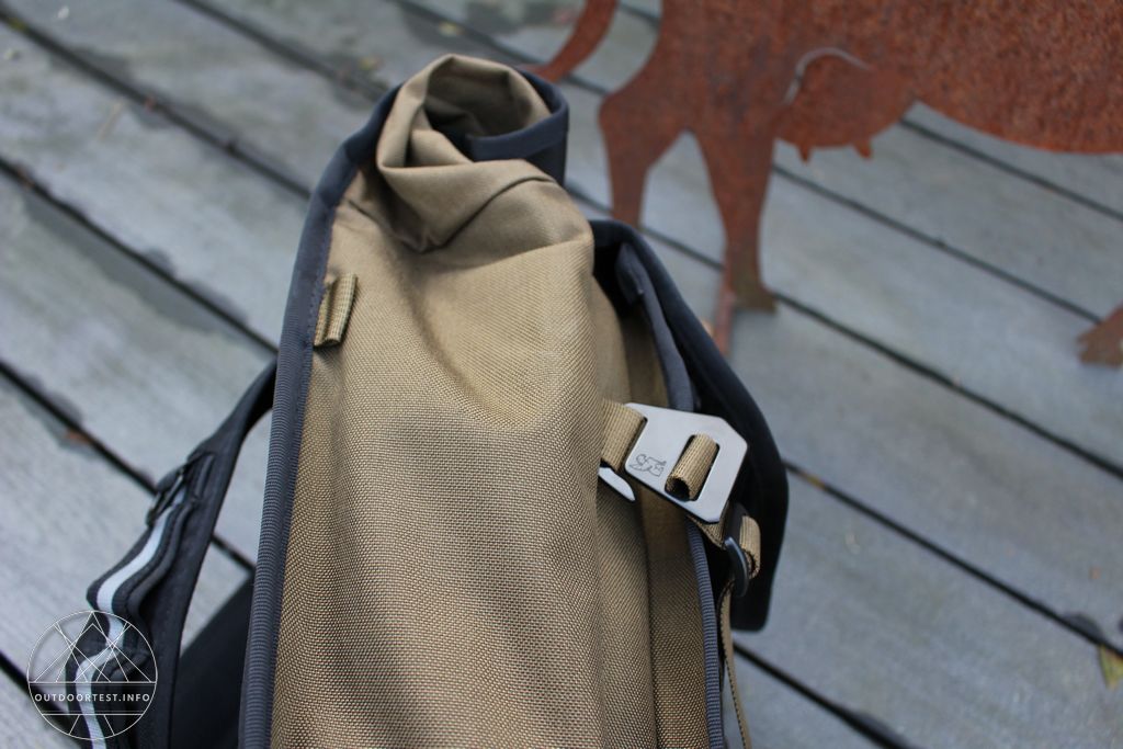 Verschlossen wird das Hauptfach über einen Rolltop-Verschluss, der an unterschiedliche Ladungshöhe und Ladungsbreite angepasst werden kann.