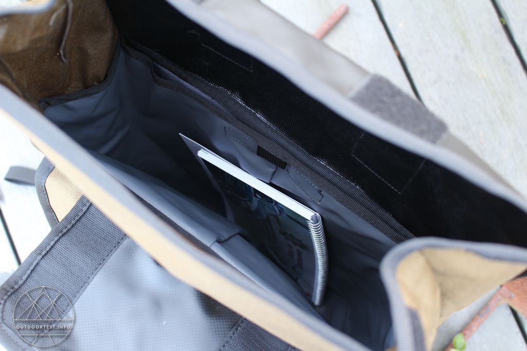 Das Hauptfach selber ist ein großes Fach ohne weitere Unterteilung. In diesem befindet sich eine frei hängende Innenhülle aus LKW-Plane, welche durch die verschweißten Nähte zuverlässig wasserdicht ist.