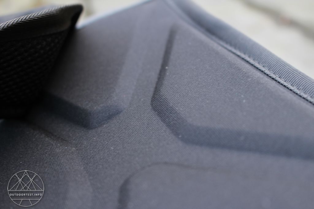Das Rückenteil besteht aus einer EVA-Schaum-Polsterung mit Kanälen für eine bessere Hinterlüftung. Zudem befindet sich im Hauptfach eine Rückenverstärkung. Die Polsterung ist angenehm weich und drückt nicht unangenehm auf den Rücken.