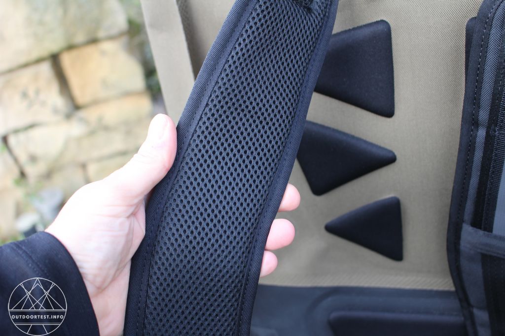 Die Schultergurte sind leicht gepolstert, drücken beim Tragen nicht und der Rucksack trägt sich auch in voll beladenem Zustand sehr angenehm.