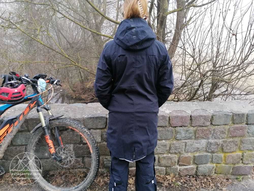 Der Regenmantel wurde in Schwarz und Größe L getestet. Das ist im Grunde ein wenig groß für mich als Testerin, da aber Winter ist und auch eine dickere Schicht bequem mit drunter passen sollte wurde eine Größe größer gewählt.
