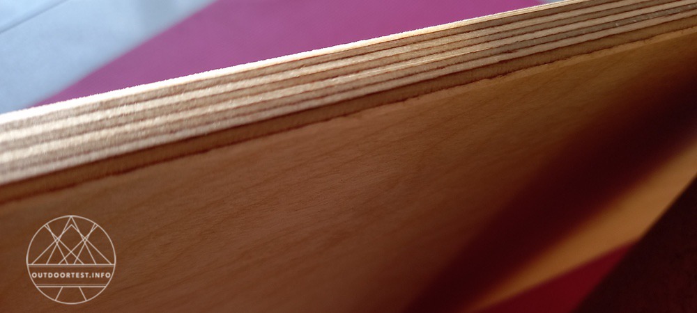 Sehr angenehm ist, dass die Boardkanten absolut nahtfrei sind und man sich nicht verletzten kann. Die geleimten Einzelschichten sind an ihrer Kante sauber abgeschliffen.