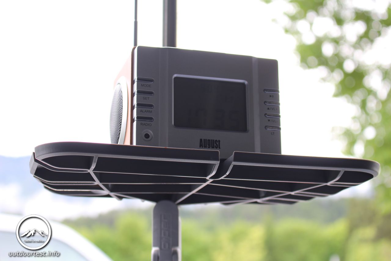 Zu Begin sollte man gleich anmerken, dass die Ablage Table im Grunde für das bereits eingangs erwähnte Solar Camping System (SCS) vorgesehen ist. Daher ist die Ablage auch kompatibel mit der Zeltstange SCS200t. Diese hat einen Durchmesser von 42mm auf welchen die Ablage ausgelegt ist. Sollte als die eigene Zeltstange etwas dünner sein, so muss kann man sich z.B. mit Klebeband Abhilfe schaffen oder man kauft sich die beleuchtete Zeltstange SCS200t, welche ca. 150,00 € zusätzlich kostet.