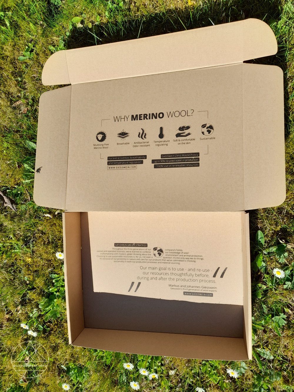 Die Jacke kommt in einem aufklappbaren Karton daher, der sich auch gut als Geschenk machen würde. Im Karton sind viele Informationen zur Merinowolle und dem Nachhaltigkeitsgedanken der Firma Giesswein aufgedruckt. So entstehen bei der Produktion 0% Stoffabfälle und das verwendete Wasser wird zu 90% recycelt. Die nachwachsende Merinowolle ist Mulesing-frei, handverlesen und weist einen hohen ethischen und ökologisch Standard auf. Zusätzlich wird bei Giesswein in der eigenen Fertigung in Tirol produziert.