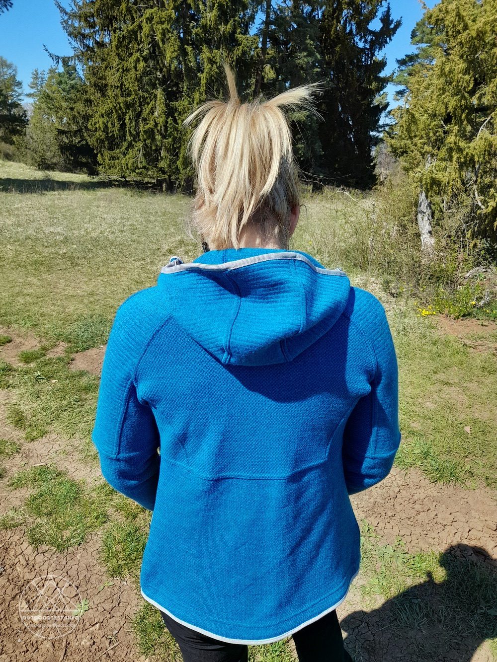 Bei der Merino Sport Kapuzenjacke hat man die Wahl zwischen 4 Farben. Das Testobjekt in Türkisblau begeistert mich durch die intensive leuchtende Farbe in Verbindung mit weißen Farbakzenten wie den Reißverschlüssen und den Bündchen. Ein erfrischend sportliches und trotzdem modisches Design, das von mir gerne auch in der Freizeit getragen wird.