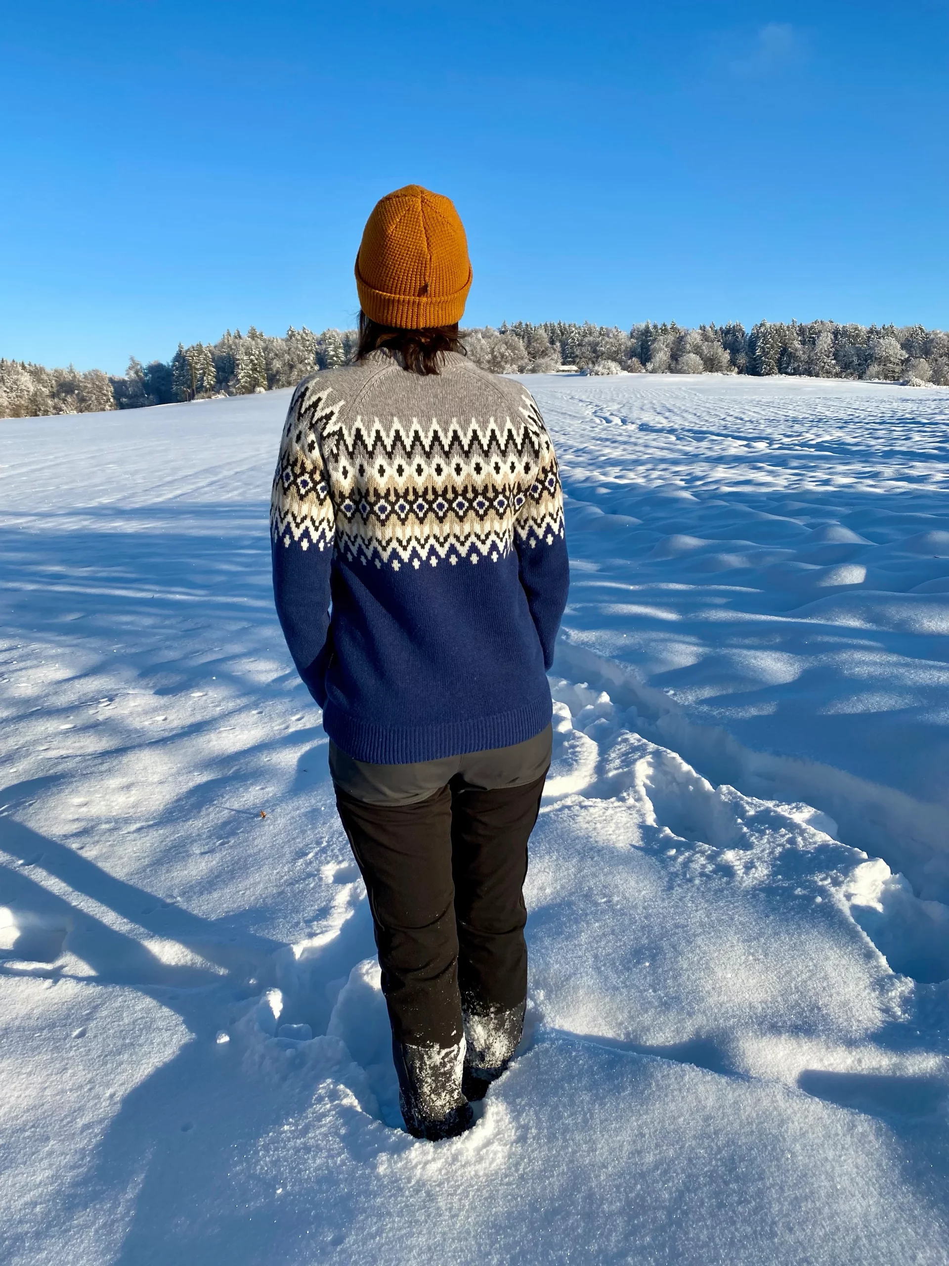 Ich hatte den Nordic Sweater in der kalten Jahreszeit sehr häufig an. Dank der hochwertigen Merinowolle muss er nicht oft in die Wäsche. Die Form bleibt erhalten und Geruch hat hier kaum eine Chance. Sollte er dennoch einmal einen Waschgang nötig haben, dann hinterlässt ein Woll-Waschgang bei 30 Grad keinerlei Spuren.