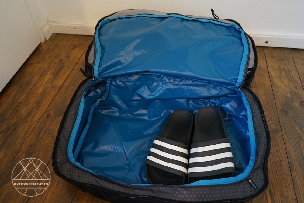 • Das Active Shield Compartment separiert dreckige, nasse Ausrüstung vom Rest des Gepäcks, ohne dass dafür eine extra Tasche benötigt wird.