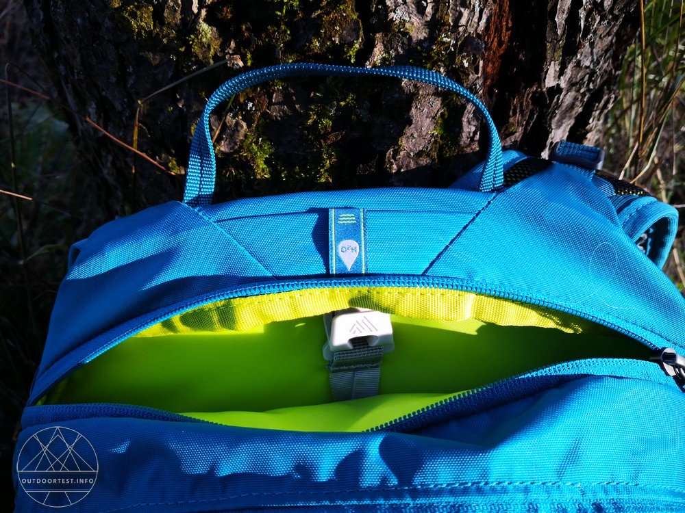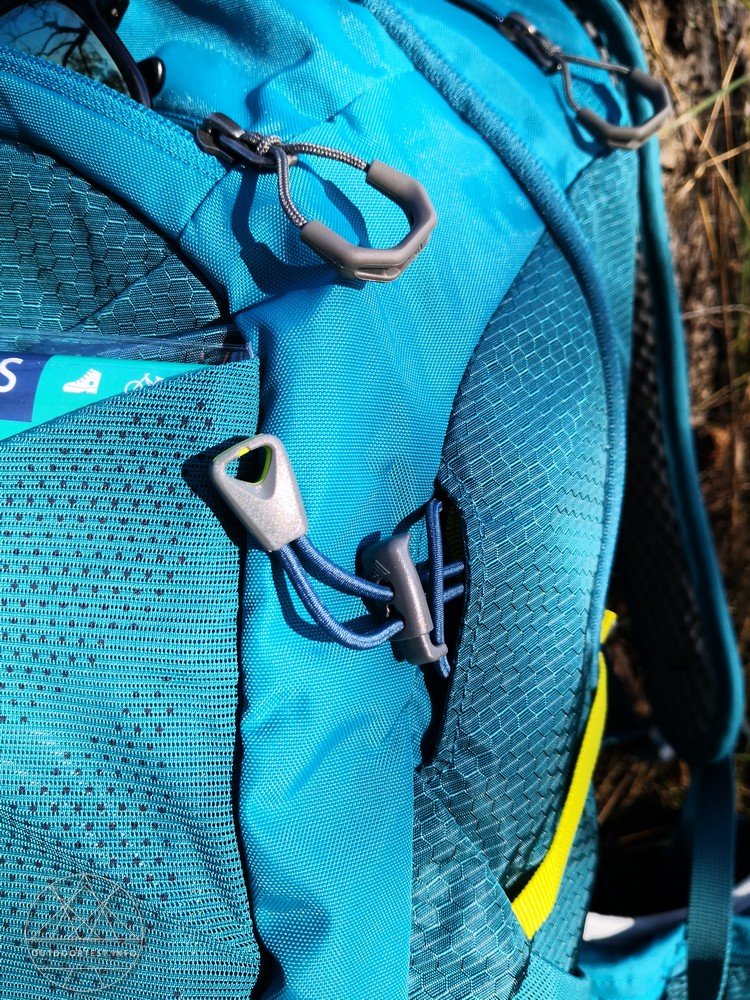 Das vordere Mesh-Fach wird bei mir für alles Mögliche verwendet und ist praktisch immer in Benutzung, da es ebenfalls sehr geschickt und sehr leicht zugänglich ist. Manchmal wird die Regenjacke drunter geschoben, mal das Klettersteigset oder die Wanderkarte. Das Mesh-Fach kann oben mit einer Steckschnalle noch verschlossen werden.