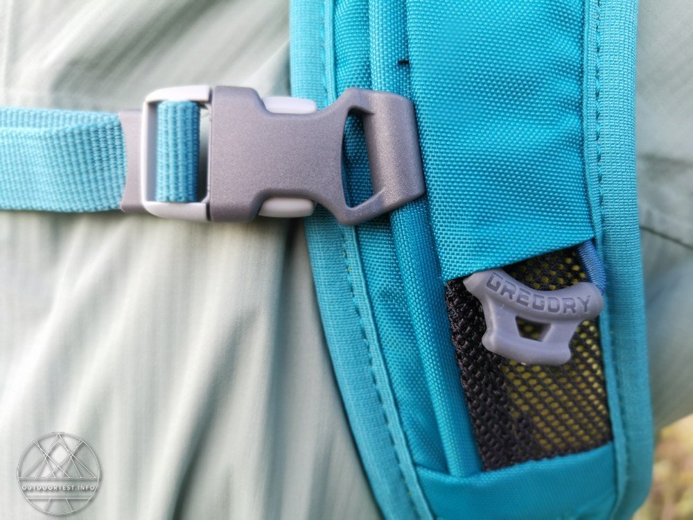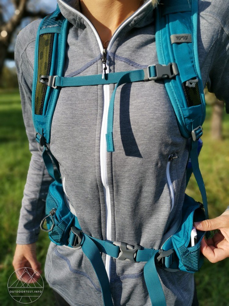 Der Maya 22 verfügt über einen Hüft- und Brustgurt, der mittels Steckschnalle verschlossen wird.