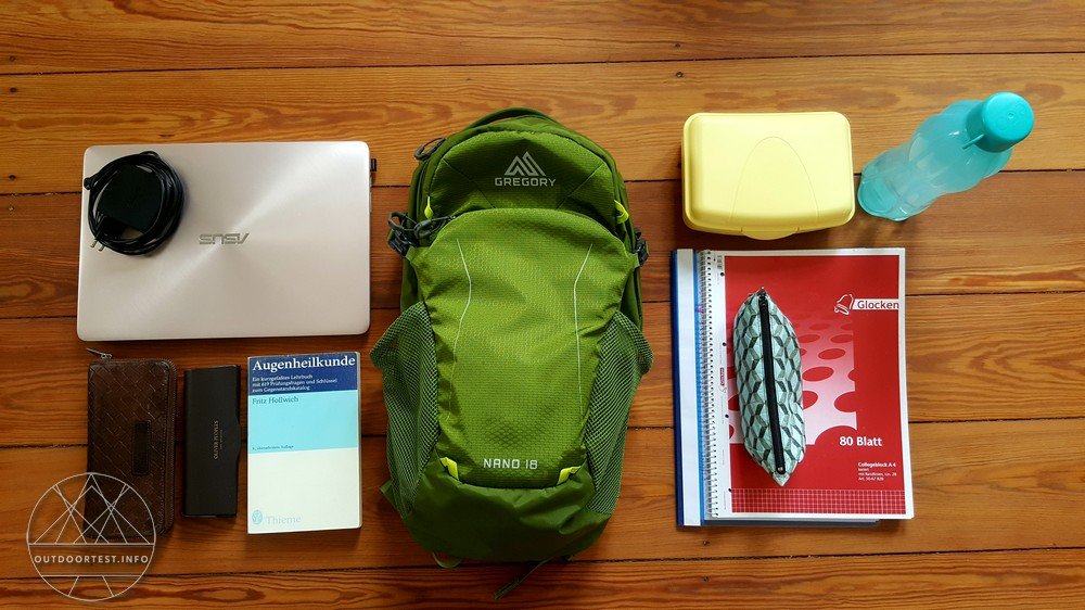 Der Nano 18 hält, was Gregory in der Herstellerbeschreibung verspricht: Der Rucksack ist ein vielseitig einsetzbarer Tagesrucksack, der ausreichend Stauraum für verschiedene Einsatzszenarien bietet und dabei einen angenehmen Tragekomfort bietet. Durch seine praktische und übersichtliche Aufteilung können Arbeits-, Sport- und Wanderutensilien sicher und ordentlich verstaut werden. Außerdem sorgen die Schultergurte und die Rückenpolsterung für ein angenehmes Tragegefühl und durch den Brust- und Hüftgurt liegt der Nano 18 gut am Rücken.