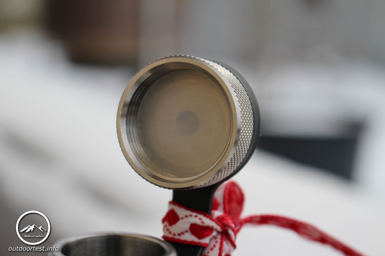 Die im Deckel befindliche Dichtung kann zum Reinigen herausgenommen werden, was ja im Grunde sehr praktisch ist z.B. wenn man den Flachmann in der Spülmaschine mal durchreinige will. Es kam während unseres Tests aber das ein oder andere mal vor, dass die Dichtung nach dem Öffnen des Schraubverschlusses, auf der Öffnung oben auf lag. Hier sollte man dann aufpassen, dass man die Dichtung nicht verliert.
