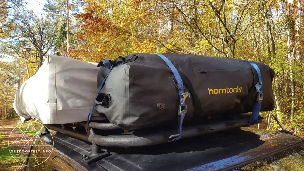 Auf Touren oder gar Expeditionen fehlt es im Fahrzeug eigentlich immer an Stauraum. In unserem Fall sind es oft zusätzliche Decken, Schlafsäcke oder Bekleidung die viel Volumen verbrauchen aber auch staub- und wassergeschützt untergebracht werden wollen. Oft werden dafür Kisten aus Alu oder Kunststoff verwendet, die aber viel wiegen und leer viel Platz wegnehmen. Die Idee von Horntools eine robuste, staub- und wasserdichte Expedition Bag zu entwickeln die einerseits viel Stauraum bietet, aber andererseits nur wenig Gewicht hat und sich leer klein zusammenlegen lässt weckte daher sofort unser Interesse. Im Fahrzeug lässt sich die robuste Duffle Bag bei Bedarf auch etwas in Form drücken, auf dem Dachträger des Fahrzeugs befestigt bietet die abgerundete Form wenig Luftwiderstand. Hat es Horntools wirklich geschafft die „ultimative immer dabei Stauraumerweiterung“ für Expeditionen zu entwickeln?