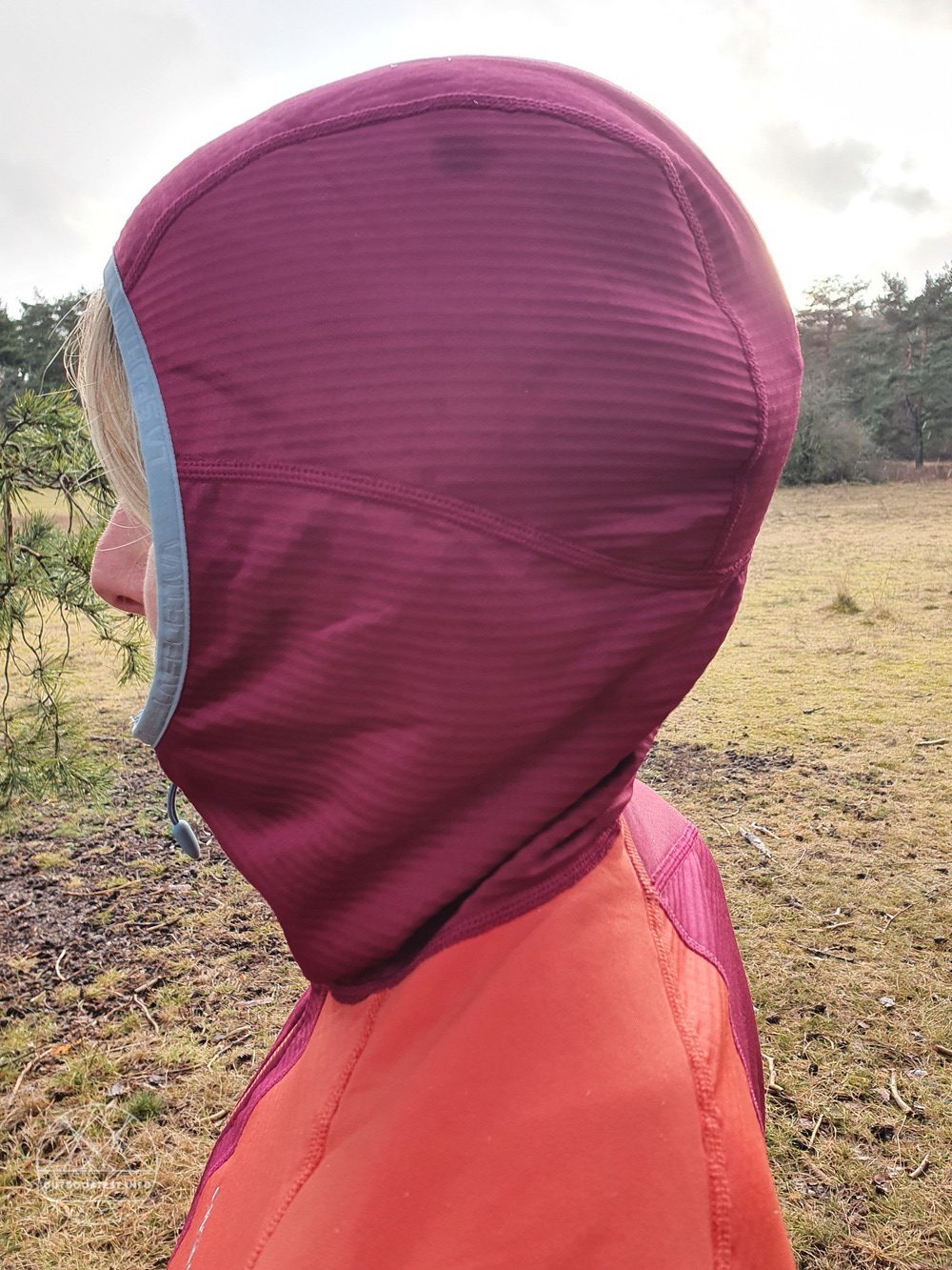 Die vorgeformte Kapuze ist fest mit dem Hoody verbunden und schützt bei kalten Temperaturen vor Wind und Wetter.