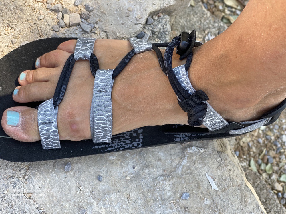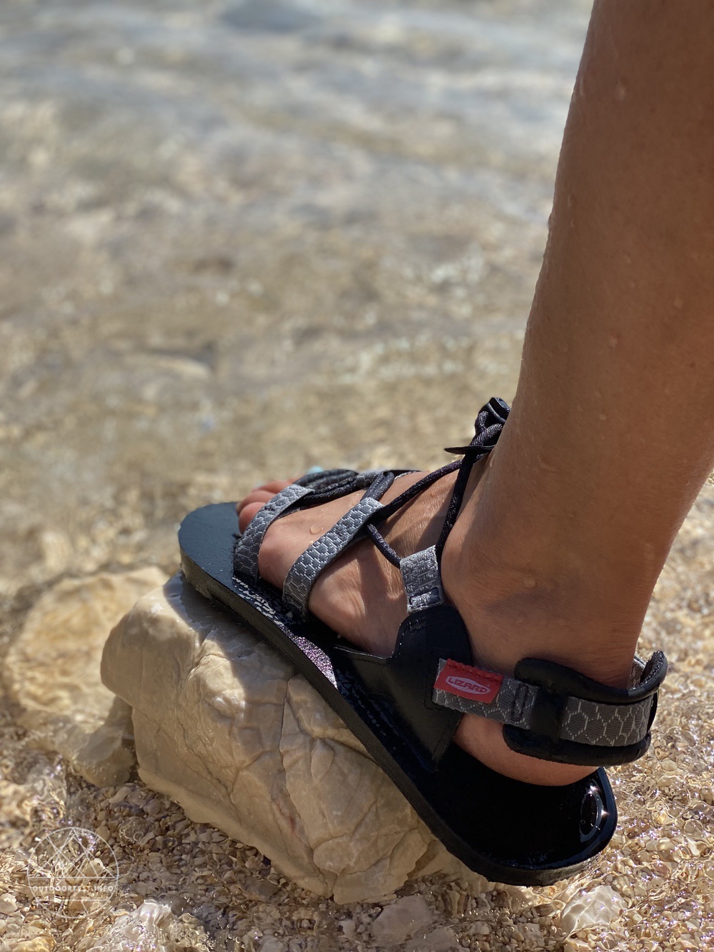 Das Anziehen erfordert am Anfang etwas Zeit, da man die Sandale durch die Schnürung perfekt dem Fuß anpassen kann. So hat man eine optimale Verbindung zur Sohle und fühlt sich auf jedem Terrain sicher. Nichts drückt und reibt unangenehm. Sie sitzt einfach richtig bequem am Fuß.