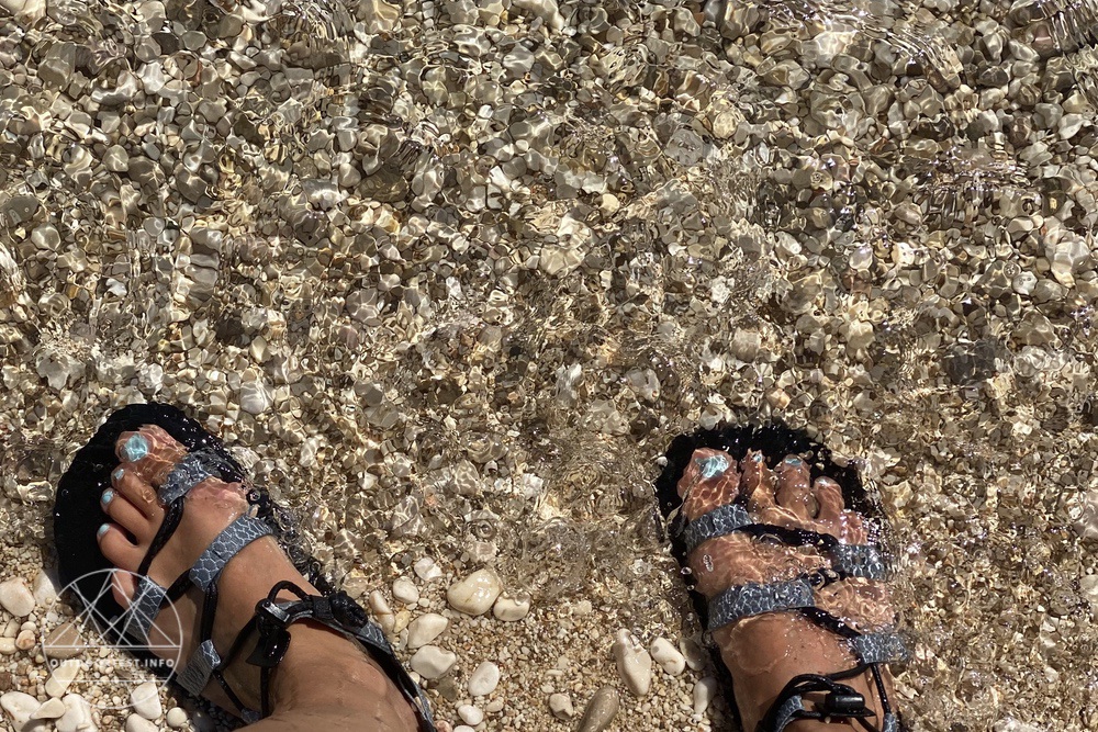 Nachdem die Sandale auch mal im Wasser war, trocknet sie auch am Fuß ruckzuck. Und trotz der Nässe geht der Halt nicht verloren.