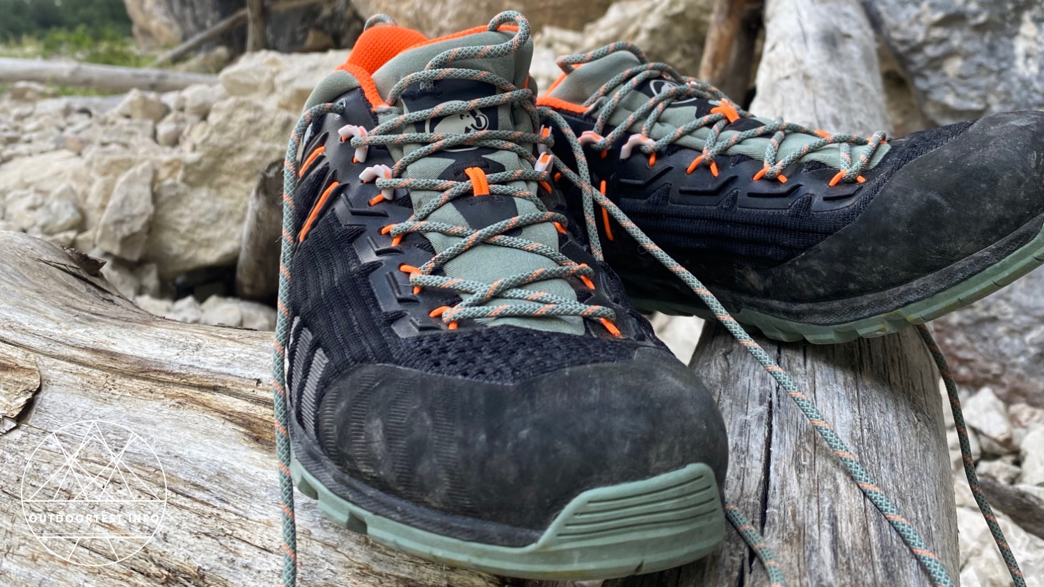 Die Wege rund um die Cinque Torri sind geprägt von losem Geröll, scharfem Fels und steilen Pfaden. Besonders im alpinen Bereich mit Klettersteigpassagen oder beim finalen Zustieg zur Wand zählt jeder Tritt. Genau hier spielt der Alnasca Knit III Low seine Stärken aus: Die Vibram® XS Grip-Sohle liefert genau das, was sie verspricht – maximale Reibung. Bei kleineren Kletterstellen im Vorfeld der Routen war es fast, als hätte man Kletterschuhe an – so präzise lässt sich der Schuh setzen.