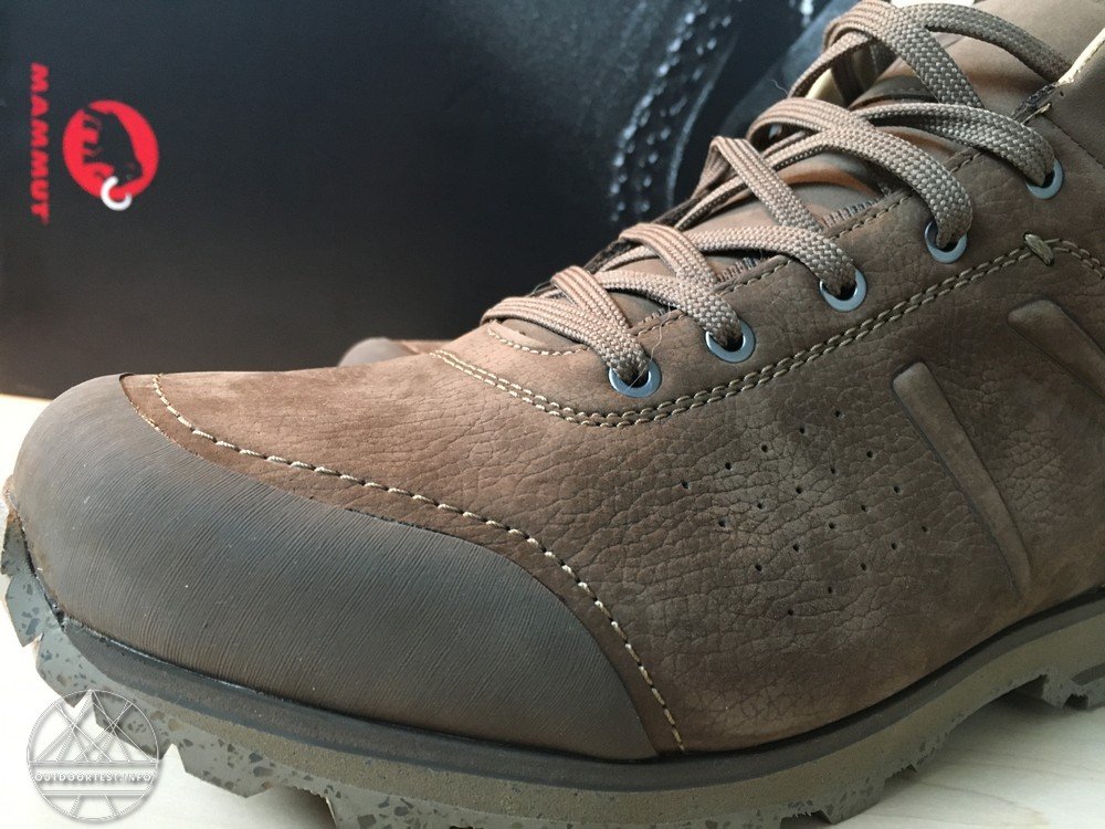 Bei einer Fußlänge von etwa 27,5 cm sitzen die Mammut Schuhe in Größe EUR 44 gut. Der empfohlene Abstand von den Zehen bis zur Schuhspitze von etwa einer Daumenbreite wird dabei eingehalten. Die Leistenform verjüngt sich im Bereich der Zehenbox, weshalb mir eine Nummer kleiner vorne etwas zu schmal ausfiel.