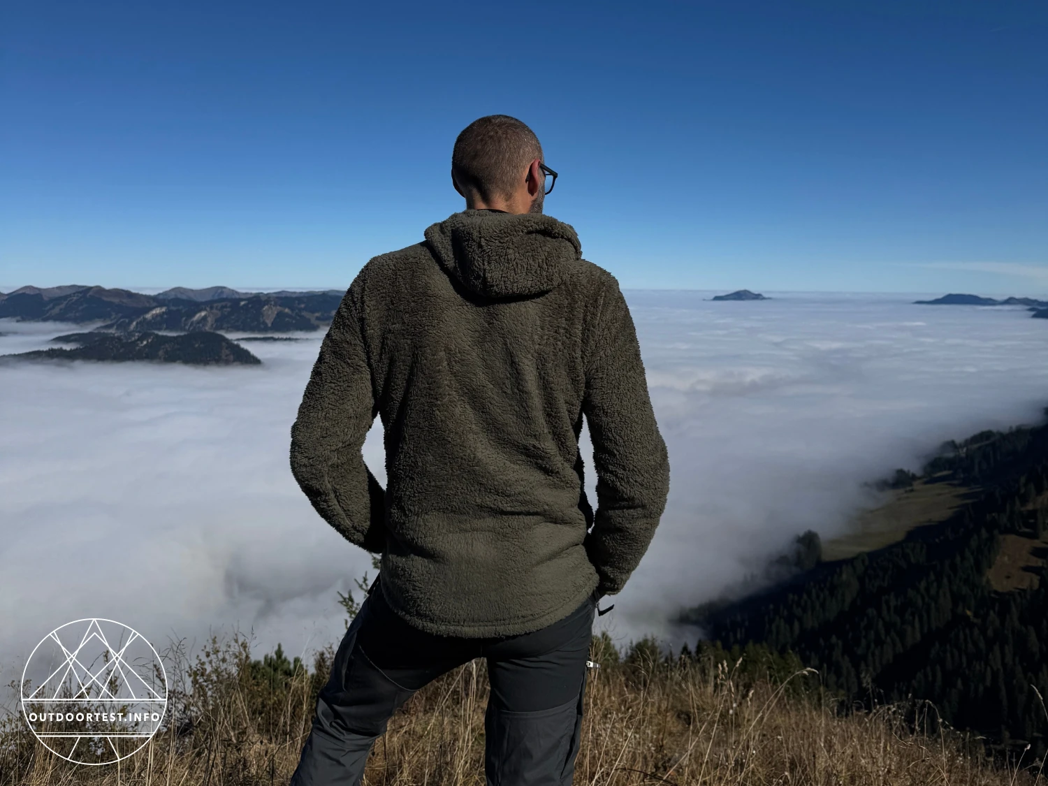 Egal, ob ich bei 8–10 °C mit dem Fahrrad fahre, spazieren gehe oder im Steiger in 20 m Höhe bei Wind und 12 °C arbeite – sie hält mich durchweg warm. Und eigentlich bin ich ja eher der Verfrorene. Die Kapuze ist, wie erwartet, bei Wind sehr angenehm und ersetzt Mütze und Schal oder Schlauchschal. Zugegeben, sie sieht vielleicht ein wenig aus wie diese Baby-Teddy-Anzüge – aber egal, Hauptsache warm. Sie ist sicherlich auch eine gute Wahl als wärmende Schicht auf Sommertouren – zum Beispiel, um sie abends nach einem anstrengenden Tag oder morgens nach dem Aufstehen, bis der Körper wieder auf Temperatur kommt, zu tragen.