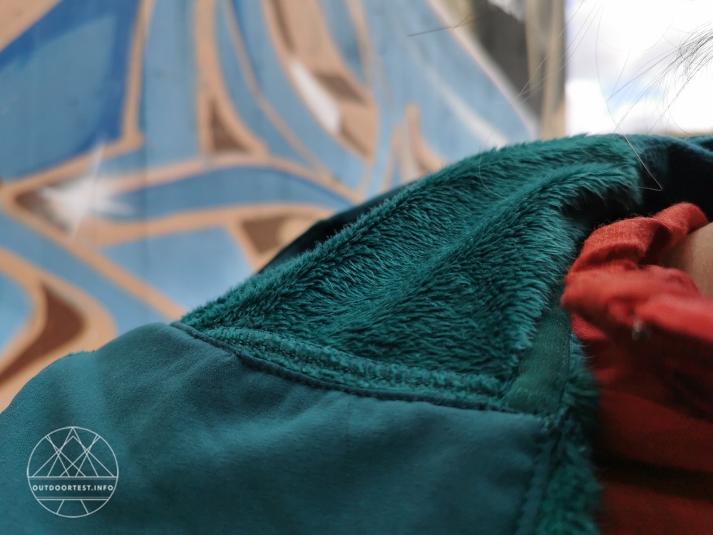 Wie oben beschrieben, hatte ich anfangs einige Bedenken, was das hochflorige Innengewebe angeht, da ich dieses für eine frühlingswarme Wanderung für etwas zu „kuschelig-warm“ gehalten hätte. So lasse ich mich gerne vom Gegenteil überzeugen, denn es war zu keiner Zeit zu warm mit der Jacke. Sie hat eine sehr gute Atmungsaktivität und transportiert die Feuchtigkeit zuverlässig ab, so dass keine Stauung entsteht. Auch das Loftgewebe unterhalb der Arme und an den Flanken korrespondiert super mit dem Hochflorgewebe. Insgesamt trägt sich die Jacke super bequem. Einmal durch den „Kuschelfaktor“ des Hochflors, aber auch durch die gute Dehnbarkeit. So macht die Krypton Softshell von Montane sämtliche Bewegungen mit und schränkt nicht ein. Ich kann außerdem eine gute Wetterbeständigkeit bestätigen. Die Jacke ist windabweisend und selbst ein kleiner Regenschauer wurde gut weggesteckt. Bei Dauerregen ist allerdings eine Regenjacke als Überzug zu empfehlen. Die Jacke saugt sich zwar nicht komplett voll, aber es entsteht ein klammes Gefühl. Die verstellbare Kapuze und der Kapuzenschirm, der sich dank einer Drahteinarbeitung noch in Form biegen lässt, helfen, Wind und Regen abzuhalten. Allerdings weist die Jacke nach mehrtägigen Wanderungen durch die Reibung von Rucksack und Jacke auf der Außenseite im Rückenbereich Knötchen auf. Interessanterweise trat dies nur im Rückenbereich auf und nicht über den Schultern, wo die Rucksackträger aufliegen.