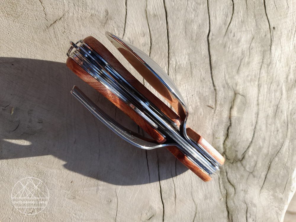 Im heutigen Test befindet sich das Besteckset Biwak ‚Vancouver‘ von Origin Outdoors.Das Design ist im kompakten Taschenmesserformat mit edler Palisanderholzapplikation gehalten. Zusätzlich kann es in zwei Teile zerlegt werden.