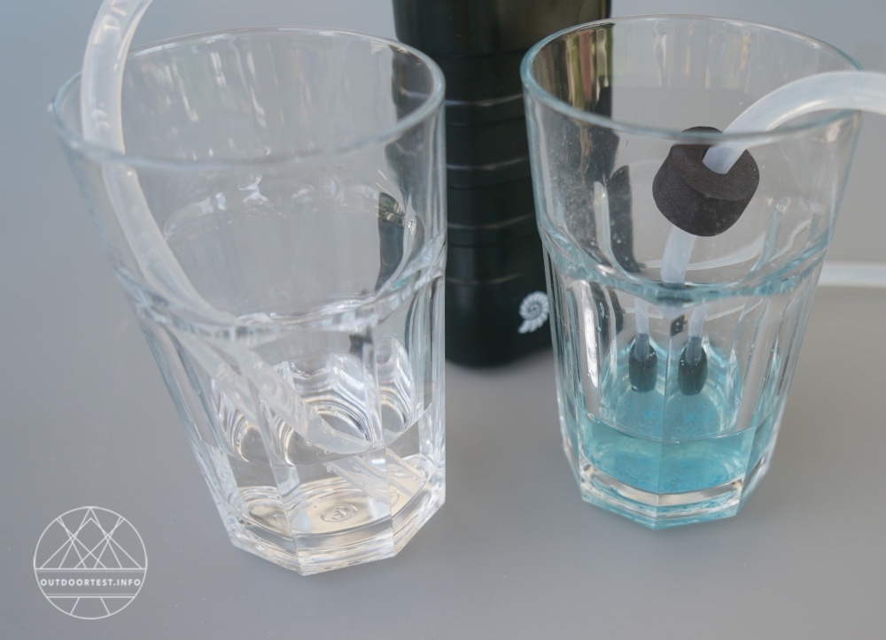 Wir konnten leicht größere Mengen Wasser damit filtern. Laut Hersteller werden nicht nur Sedimente und sonstiger sichtbarer Schmutz gefiltert, sondern auch Krankheitserreger, Sporen und Bakterien.