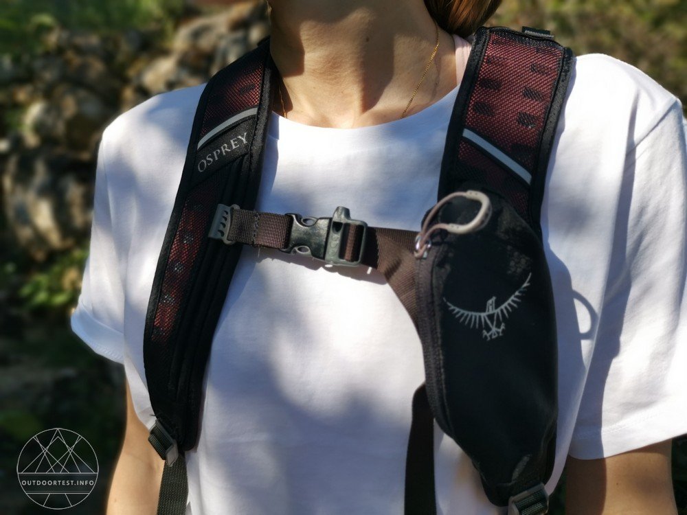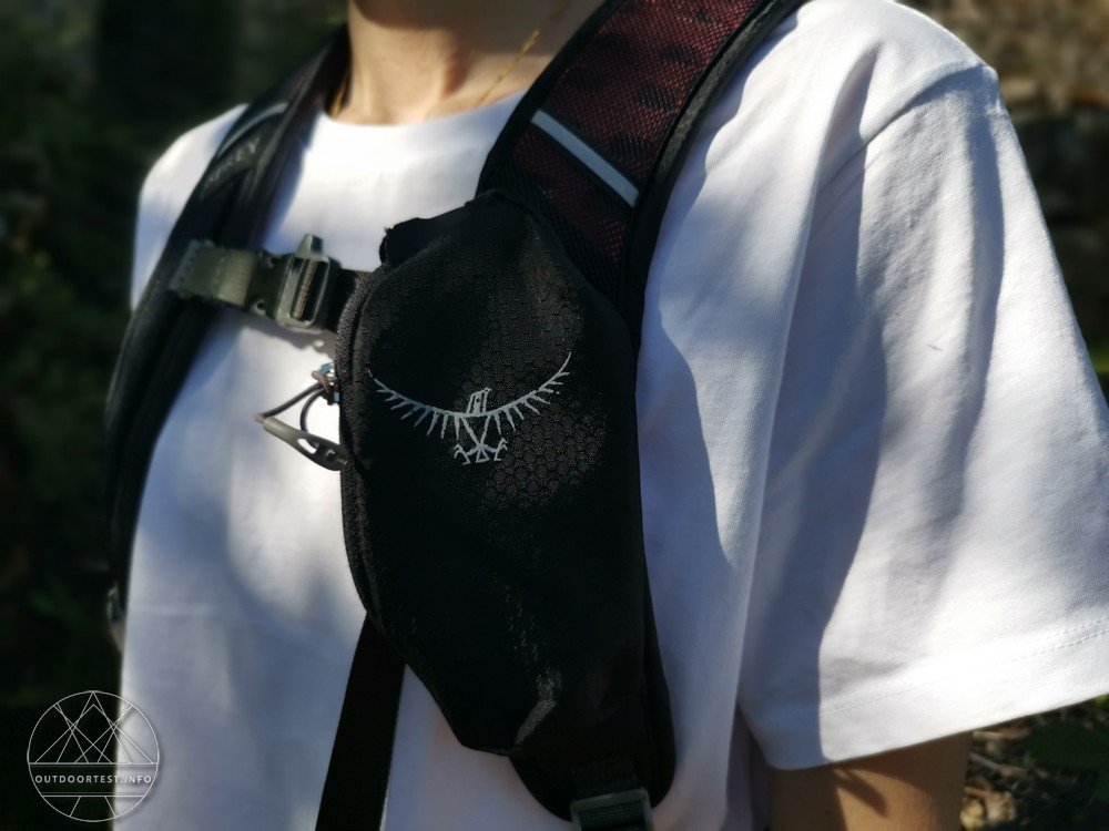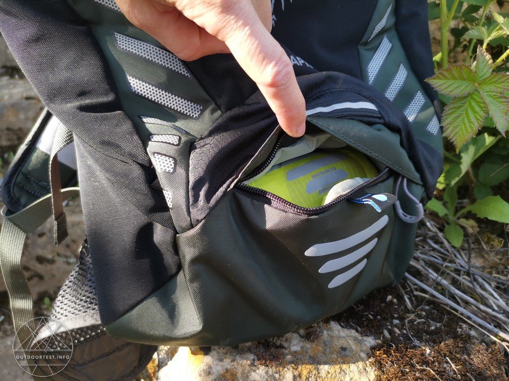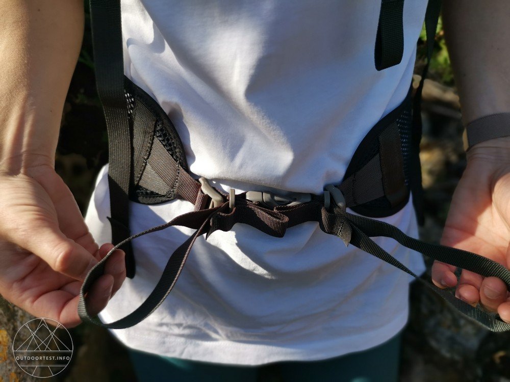 Die Schultergurte sind noch mit Schlaufen ausgestattet, die sich zur Befestigung von diversem kleinerem Equipment eignen. Zusätzlich ist am linken Schultergurt noch ein kleines verschließbares Täschchen integriert, in dem z.B. ein Energieriegel schnell greifbar ist.