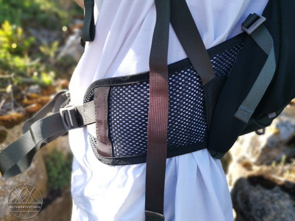 Die Schultergurte sind ebenfalls gepolstert, sodass die Riemen angenehm auf den Schultern liegen und nicht einschneiden. Die Rückenplatte geht über die Hüftflossen in den Hüftgurt über.