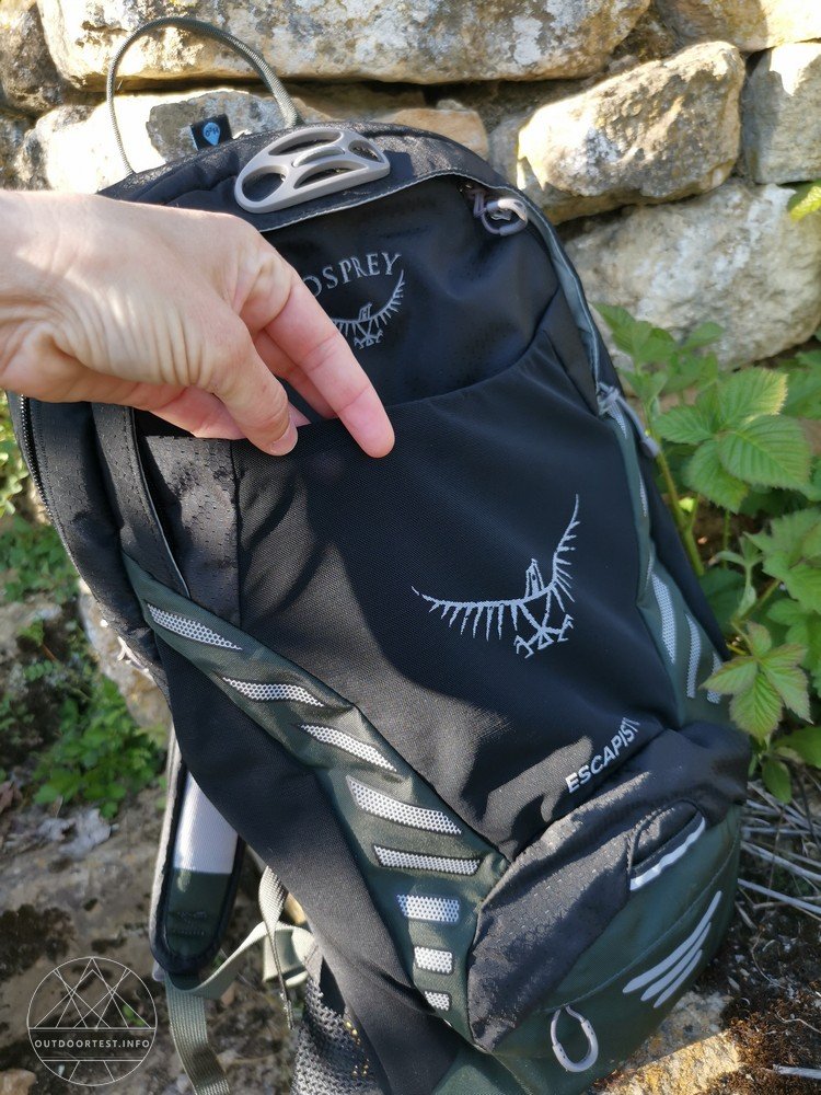 An der Rucksackaußenseite hat der Escapist noch verschiedene Einschubfächer zu bieten, die in einem dehnbaren Strechmaterial gewählt wurden.