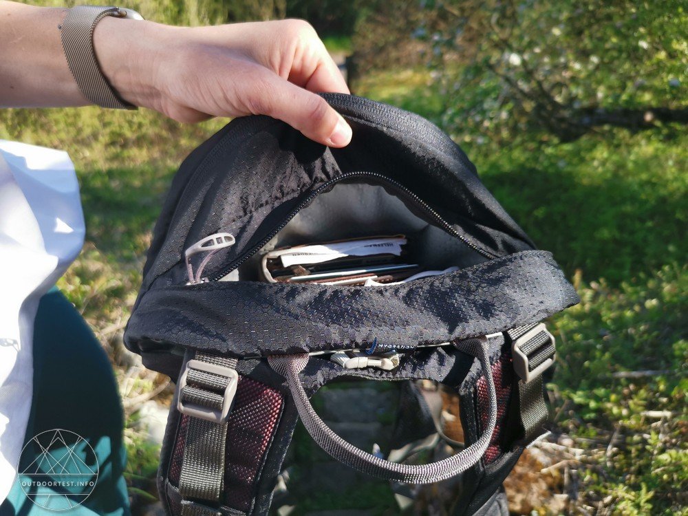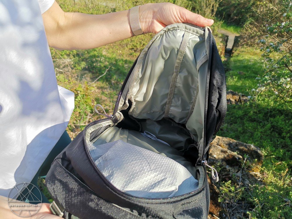 Das Fach ist bei mir sehr häufig im Einsatz, da es einfach geschickt ist, wenn man mal kurz sein Langarmshirt oder seine Radhandschuhe verstauen möchte. Gerade bei nassen oder verschwitzen Kleidungsstücken ist es von Vorteil, wenn man sie nicht in den Rucksack selbst packen muss.