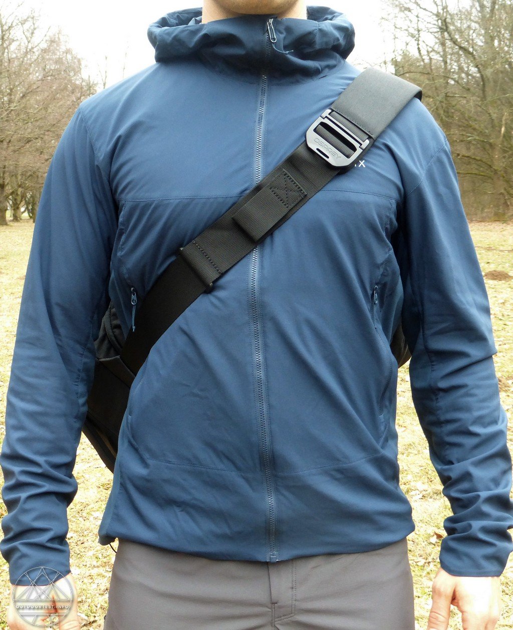 Auf dem Weg zu Arbeit hat mir die eng anliegende Tragevariante diagonal über der Schulter getragen sehr gut gefallen. Die geschickte Meshtasche innen und die Außentasche mit Schlüsselclip sind genau richtig um Kleinsachen zu verstauen. Das Hauptfach ist groß genug für alles andere (auch für Aktenordner).