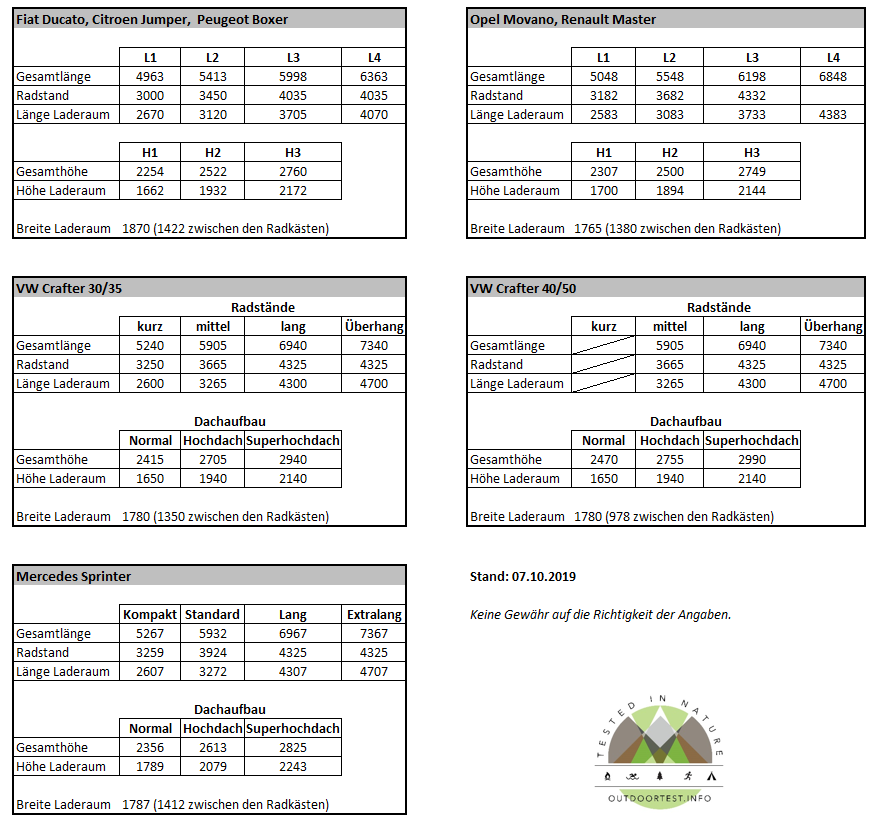 Die Länge und die Höhe des Fahrzeuges sind sicherlich ein wichtiger Punkt. Klar, je länger und höher, desto mehr bekomme ich in die Kiste rein und hab dann bald eine ganze Wohnung auf Rädern.