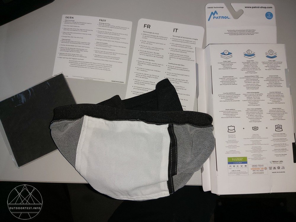 Um sich nun trotzdem nicht ganz den unschönen weißen, bzw. blassblauen Masken ergeben zu müssen, hat sich der Hersteller Patrol etwas einfallen lassen und einen Halsschlauch kreiert, der einen FFP2-Filterschutz mit integriert hat.