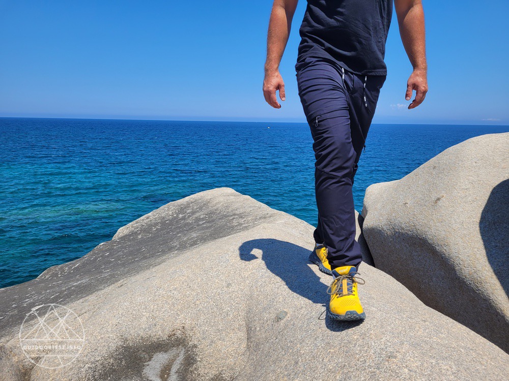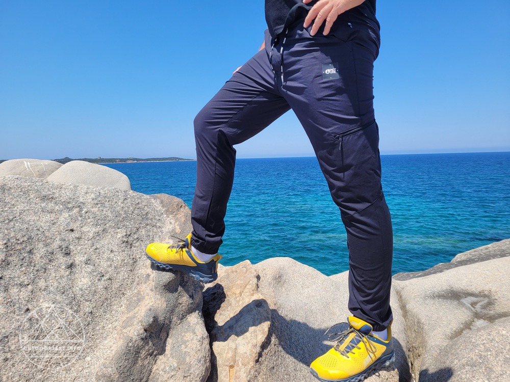 Dreht die Sonne die Temperaturen einmal hoch oder gilt es anstrengendere Wanderpassagen zu bewältigen, leitet die Wanderhose die Wärme zuverlässig nach außen. Zudem sorgt die verwendete Kombination aus hydrophilen und hydrophoben Recycling-Polyesterfasern dafür, dass die entstandene Feuchtigkeit weg von der der Haut an die Oberfläche transportiert wird, wo sie rasch verdunsten kann. So hatte ich auch an heißeren Tagen auf Sardinien nie ein unangenehmes, klammes Gefühl.