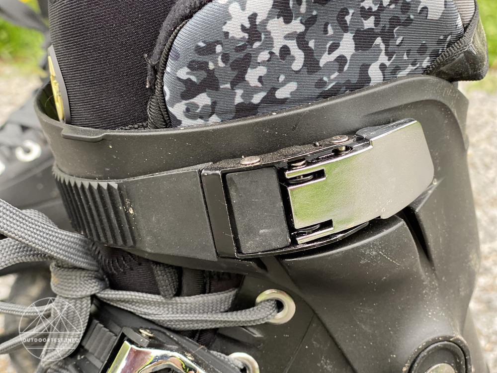 Mein erster Eindruck war einfach nur „Wow“! Die Skates wirken durch die großen Rollen einfach nur riesig und ganz anders – aber beim genauen Hinschauen sind es einfach Skates mit großen Rollen. Der Schuh ist sehr gut verarbeitet, bietet ein stabiles und Halt gebendes Gehäuse aus glasfaserverstärktem Kunststoff und einem weichen Innenschuh. Der Hardboot erinnert mich so ein bisschen an einen Skischuh, vor allem beim rein- und rausschlüpfen ist er am Anfang doch sehr hart und gibt wenig nach. Wenn man dann aber drin ist, spürt man in erster Linie den angenehm gepolsterten Innenschuh und den stabilen Halt durch den Hardboot. Der Verschluss erfolgt im unteren Bereich mit einer Schnürung, in der Mitte mit einem microverstellbaren Schnellverschluss (Ratschensystem) und oben mit einem microverstellbaren Schnellverschluss. Wenn die Verschlüsse dann alle angepasst und zu sind, sitzt der Fuß bombenfest im Schuh. Alles an dem Schuh wirkt absolut hochwertig und stabil, man hat keine Angst beim fest zu ziehen einen Verschluss abzubrechen oder sonst etwas kaputt zu machen.
