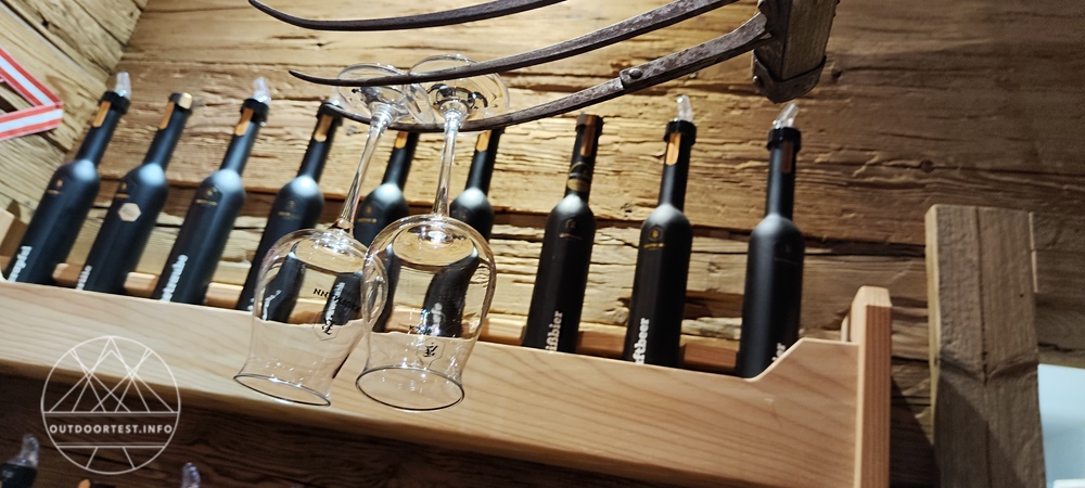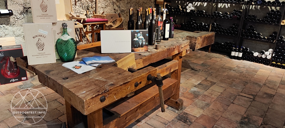 Ganz witzig ist die ein paar Meter entfernte „Schnapsidee“. Hier wurde aufgrund Platzmangels mal die Wand aufgesägt. Von den Damen des Hauses als „Schnapsidee“ abgetan, bekam der Raum dann sogleich den passenden Namen und seitdem beherbergt die Schnapsidee ein paar leckere Edelbrände in rustikalem Ambiente.